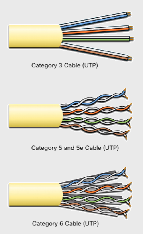 - Cavi Categoria 3 (Cat3): doppini senza guaina interna, non avvolta;
