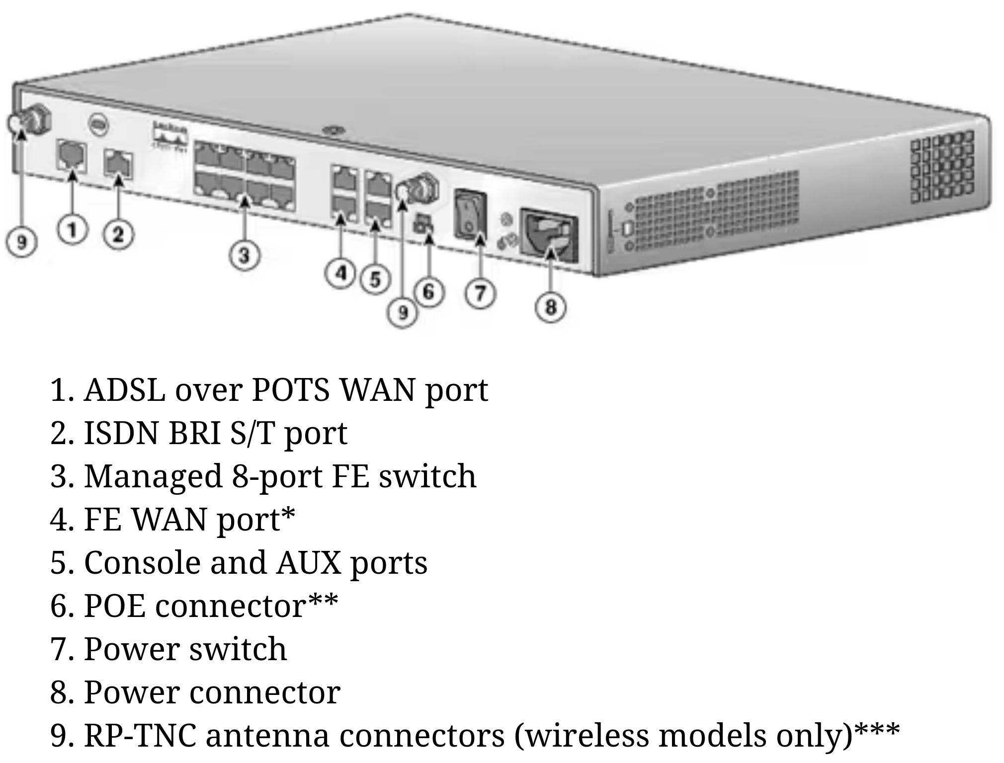 Come tutti i computer, quindi, i router sono dotati di memoria (in particolare, RAM, NVRAM di configurazione, e memoria flash di configurazione), CPU, e loro particolarità, un sistema di I/O estremamente specializzato (ed estremamente veloce) composto dalle porte di ingresso e uscita (solitamente di tipo Ethernet) su cui viaggiano i pacchetti (a tal proposito, Interfacce e porte). Vediamo ad esempio il backplane di un router Cisco serie 1800 per vedere il tipo di interfacce di cui ha bisogno: