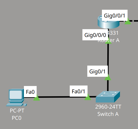 - La porta 0/0/0 sarà collegata ad uno switch, quindi collegato ad un calcolatore (via porta Fast Ethernet). Questa andrà a formare la nostra Local Area Network;